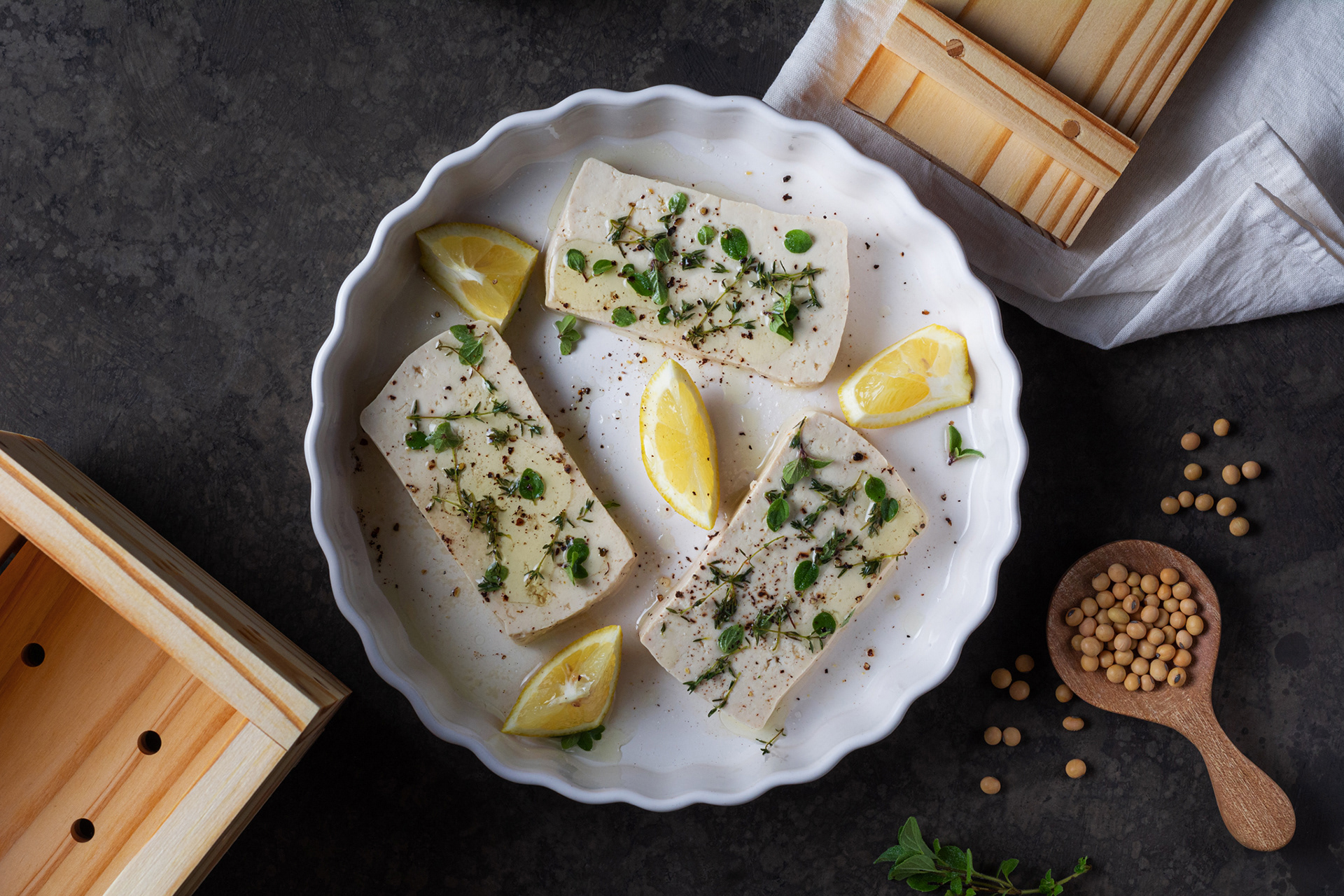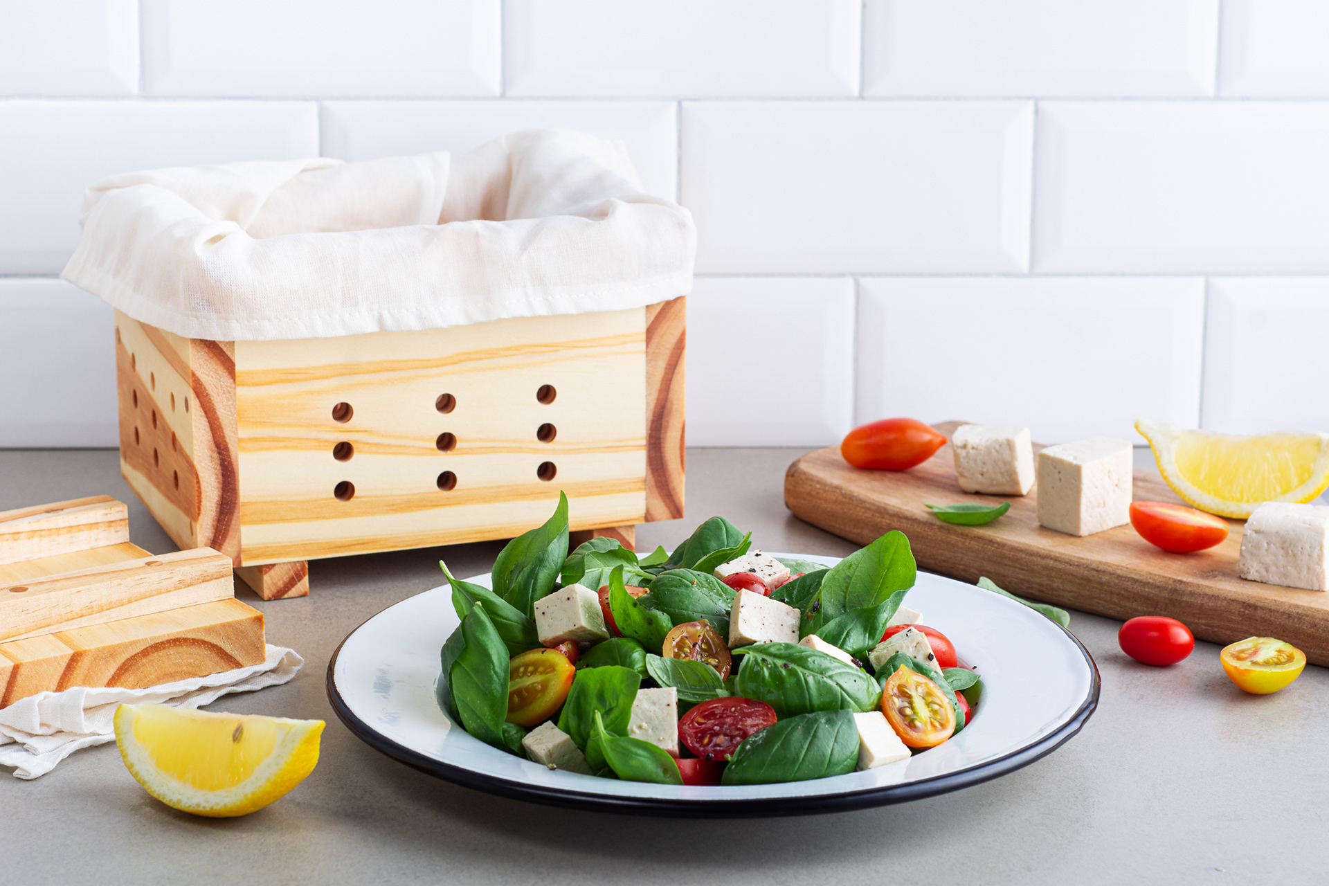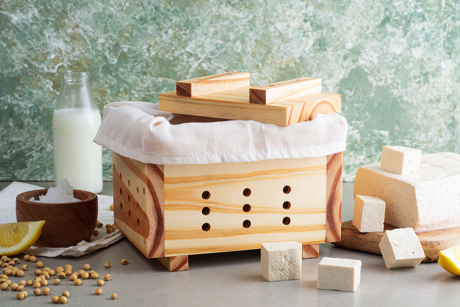 Trabajo para cliente fabricante de prensas de tofu, Tofunny, de foto producto con ambientación para sitio web y con fondo blanco para ecommerce.